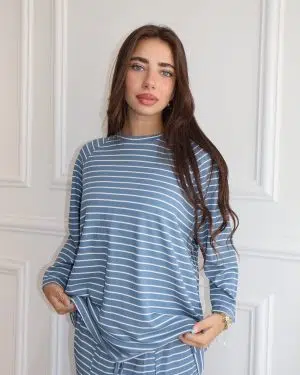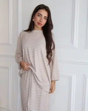 שמלת ועליונית סריג פסים