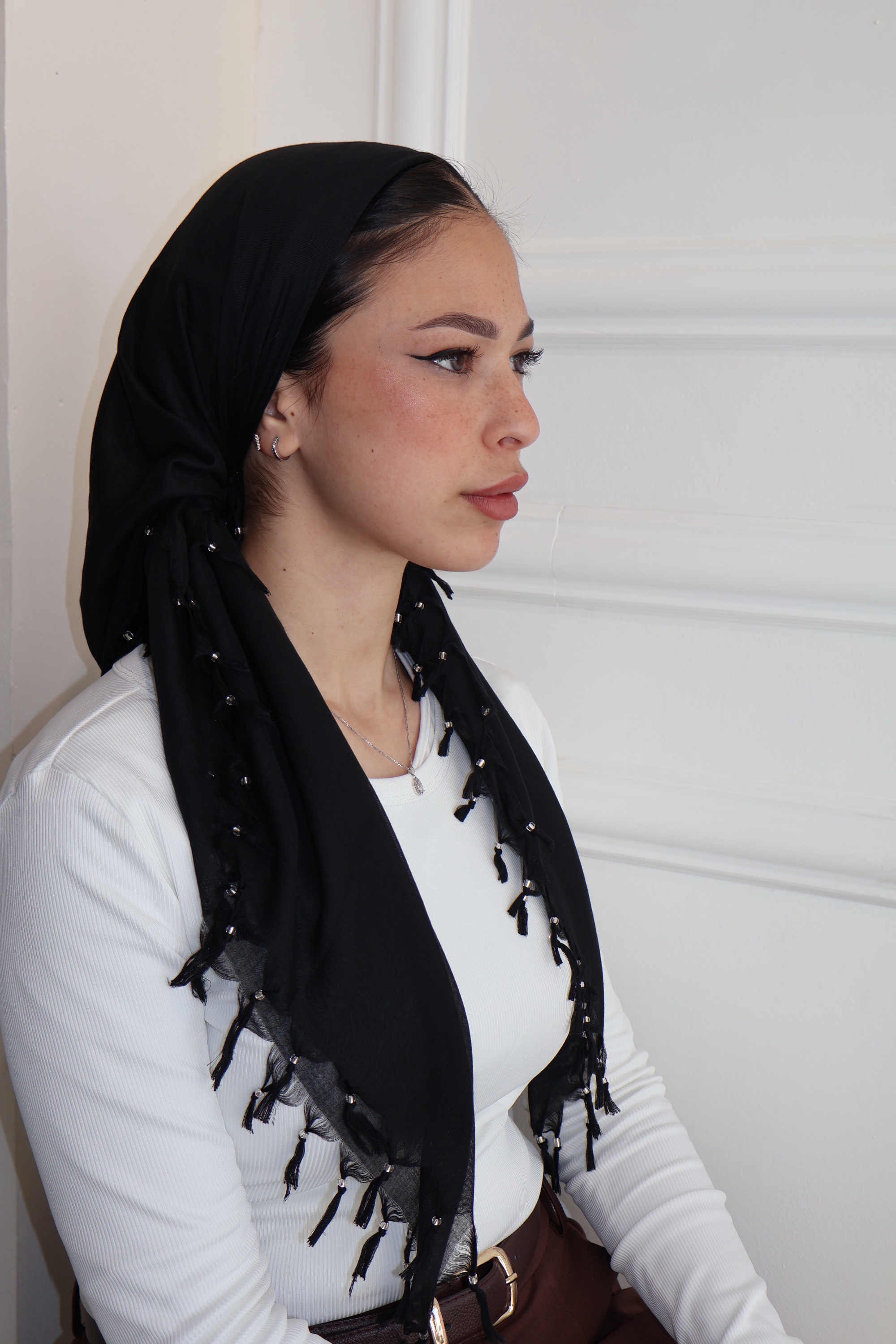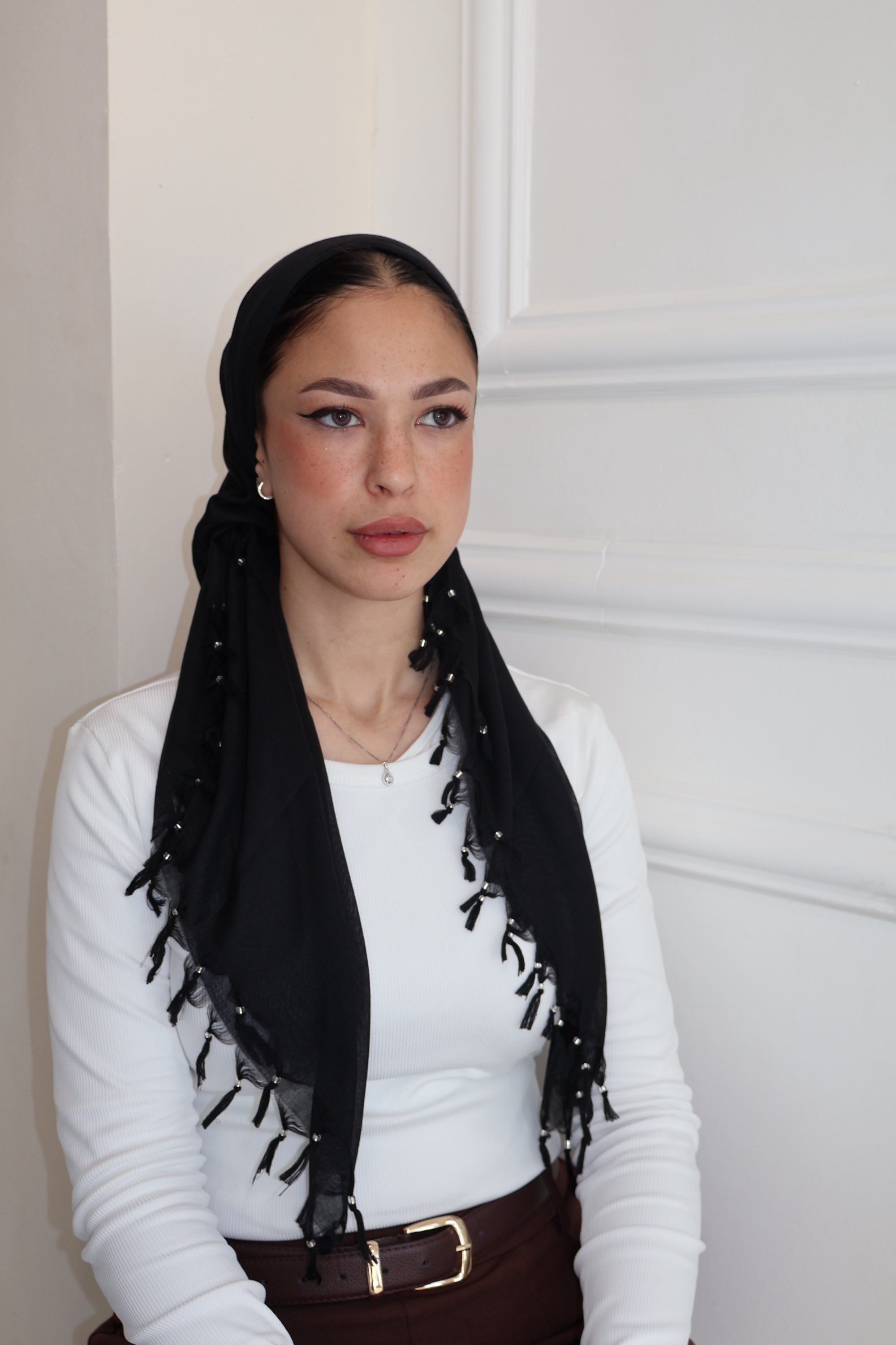 מרובעת קרפ פרנזים שחורה