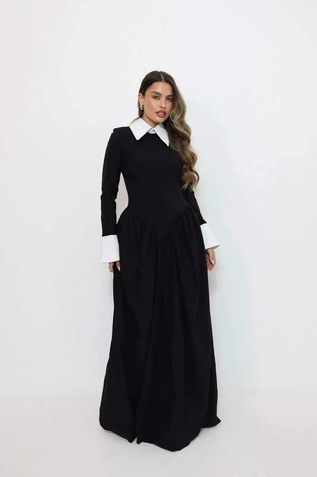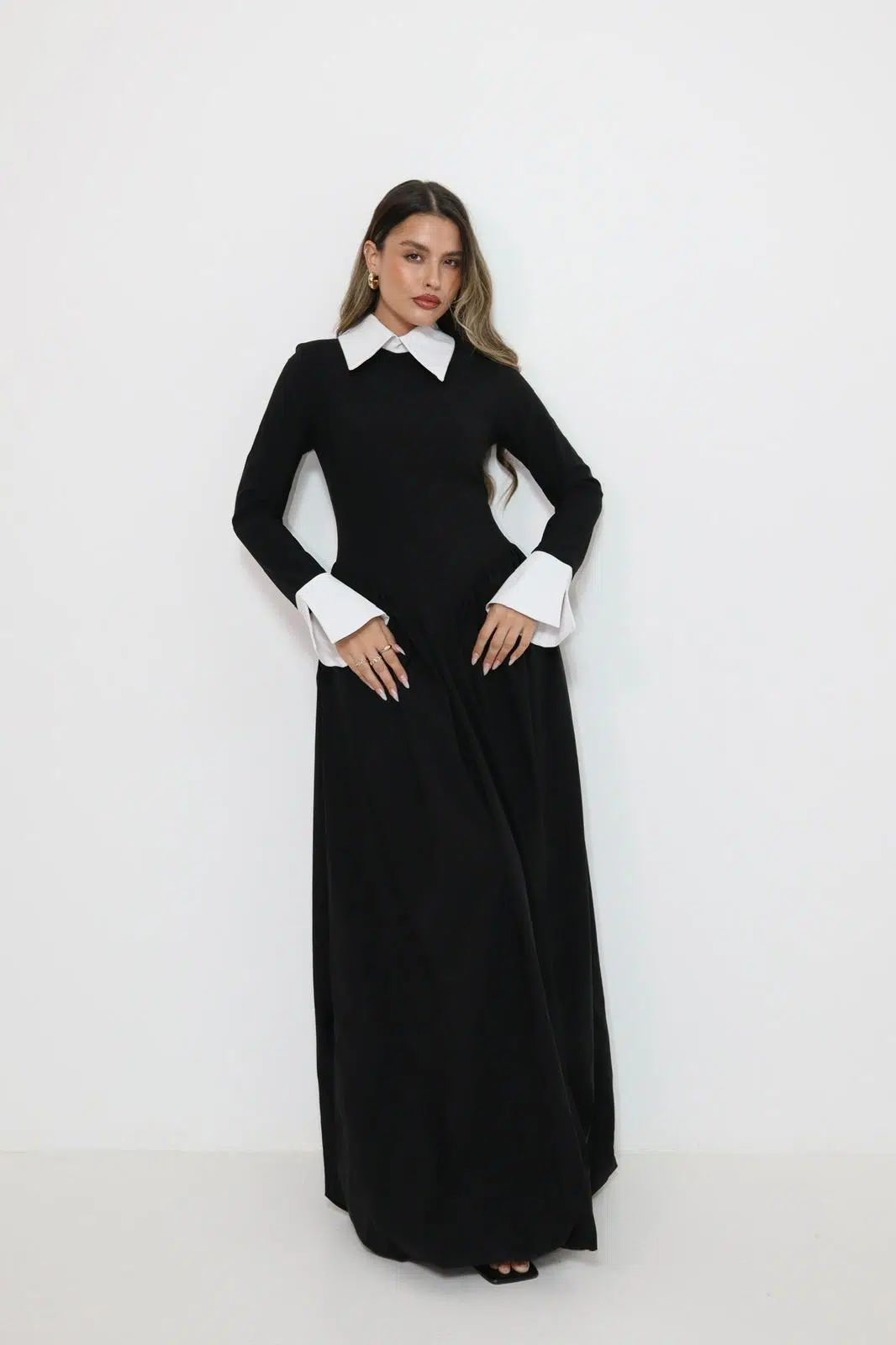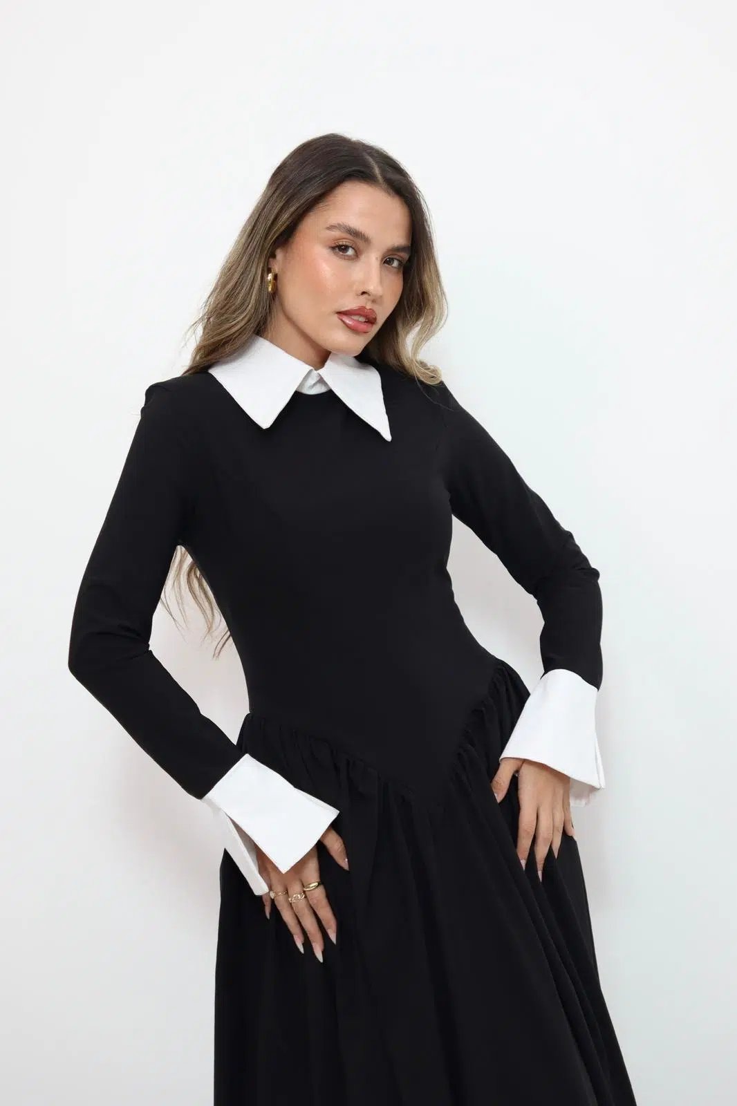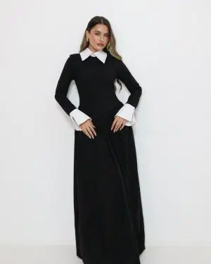 שמלת קלוש שילוב צווארון לבן