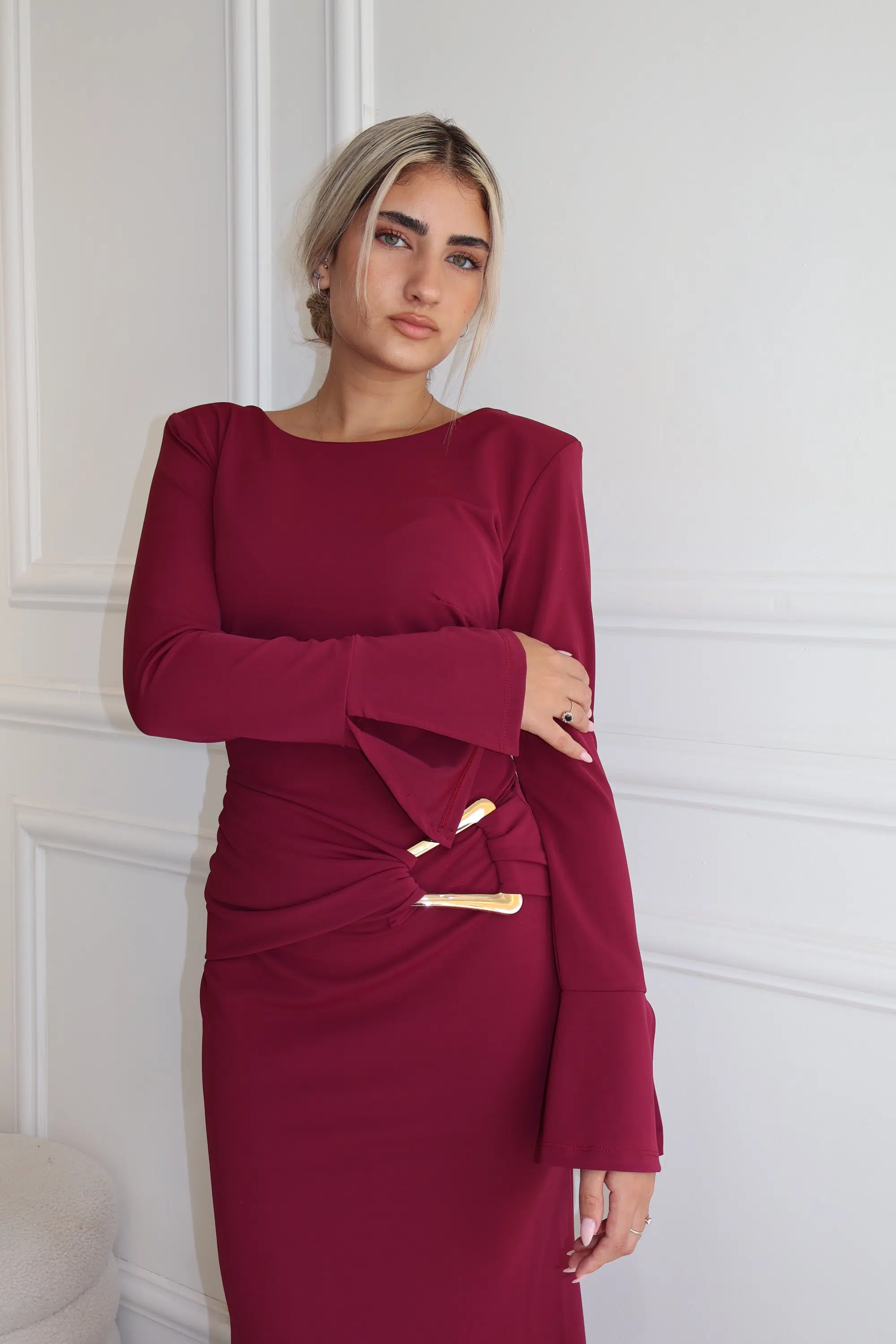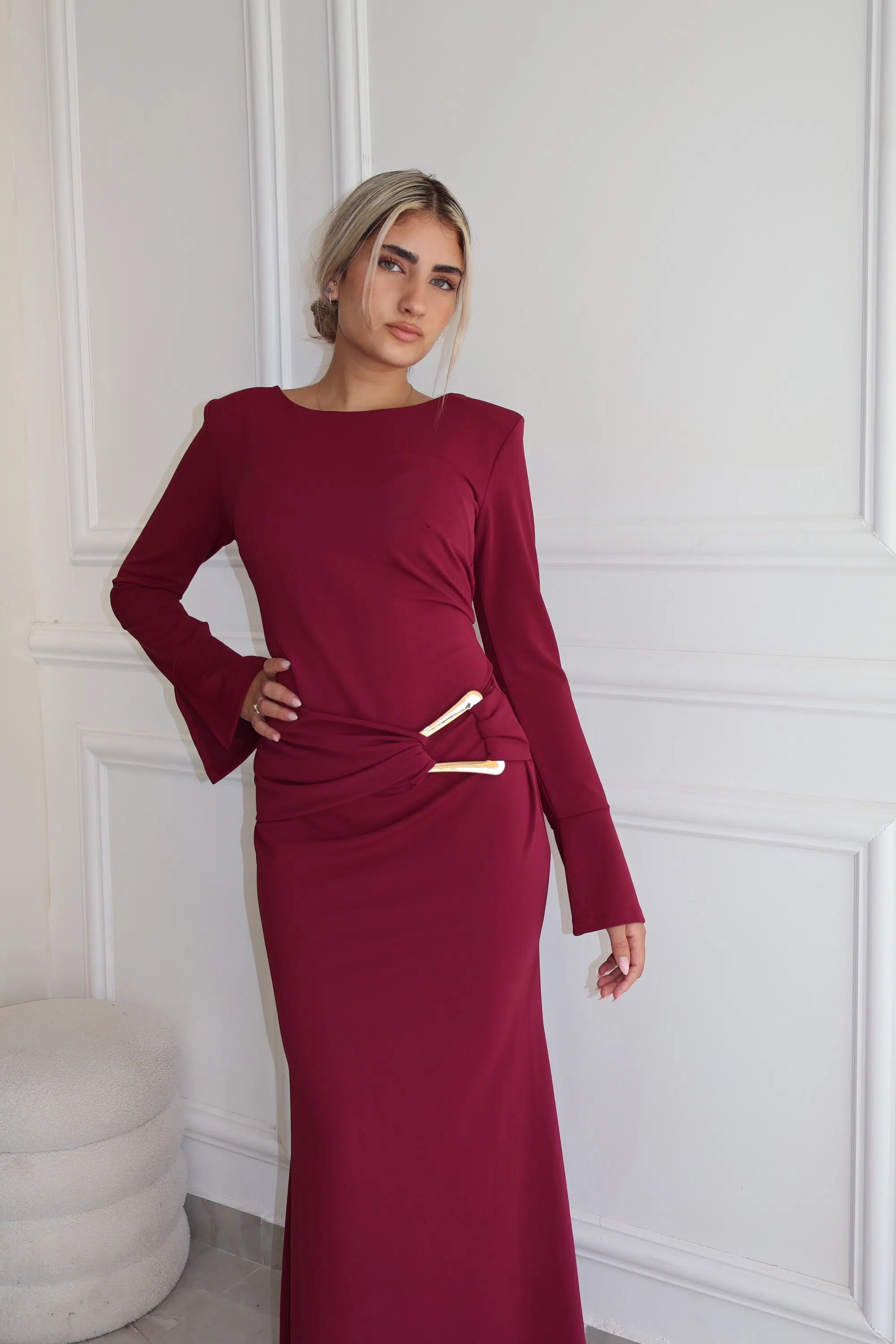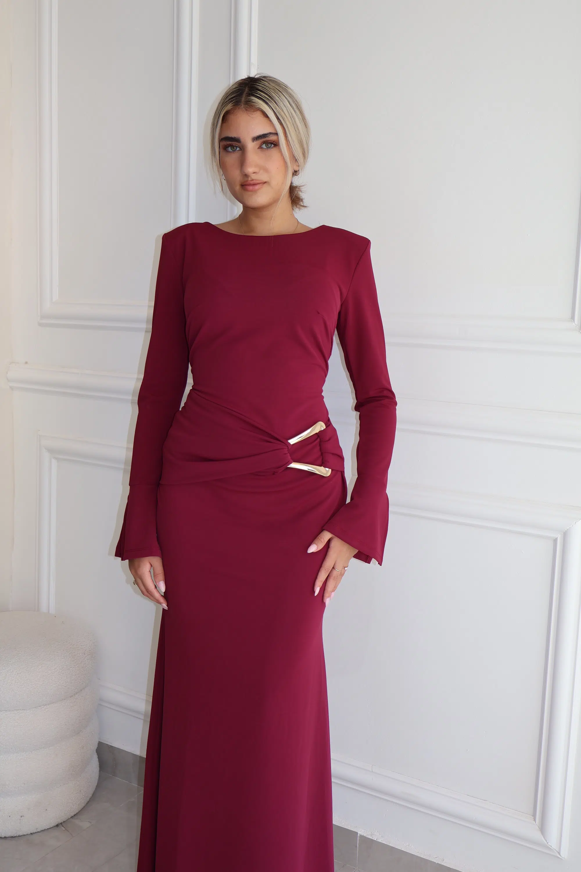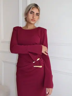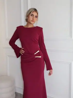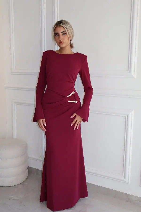 שמלת מקסי שילוב אביזר זהב ורוד
