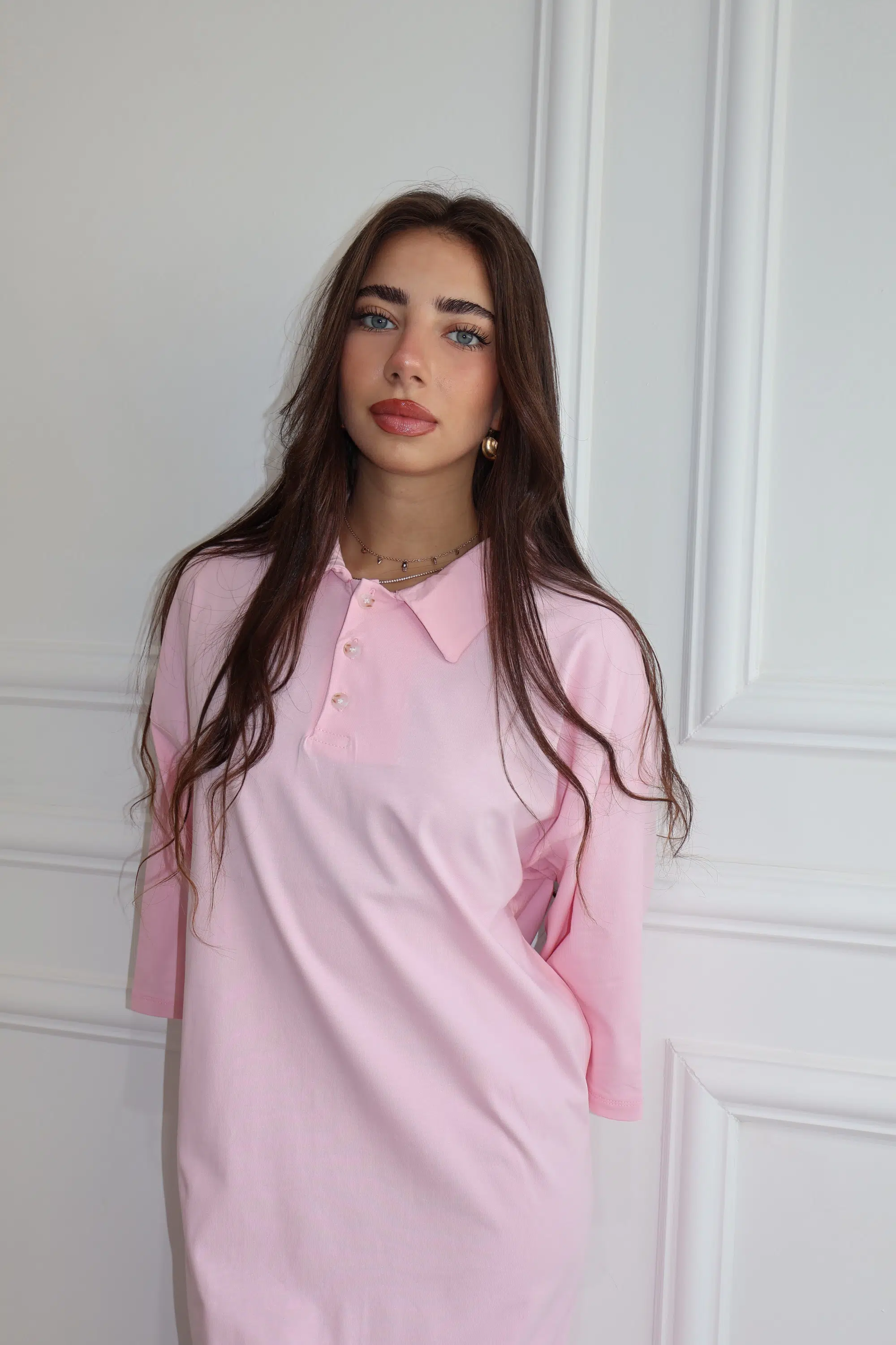 שמלת דניאלה בצבע ורוד בייבי – קלאסית, רכה, ומחמיאה בדיוק כמו שאת אוהבת. עם צווארון אלגנטי, גזרת A נוחה ובד נעים ונשפך – זו שמלה שכובשת בשקט.