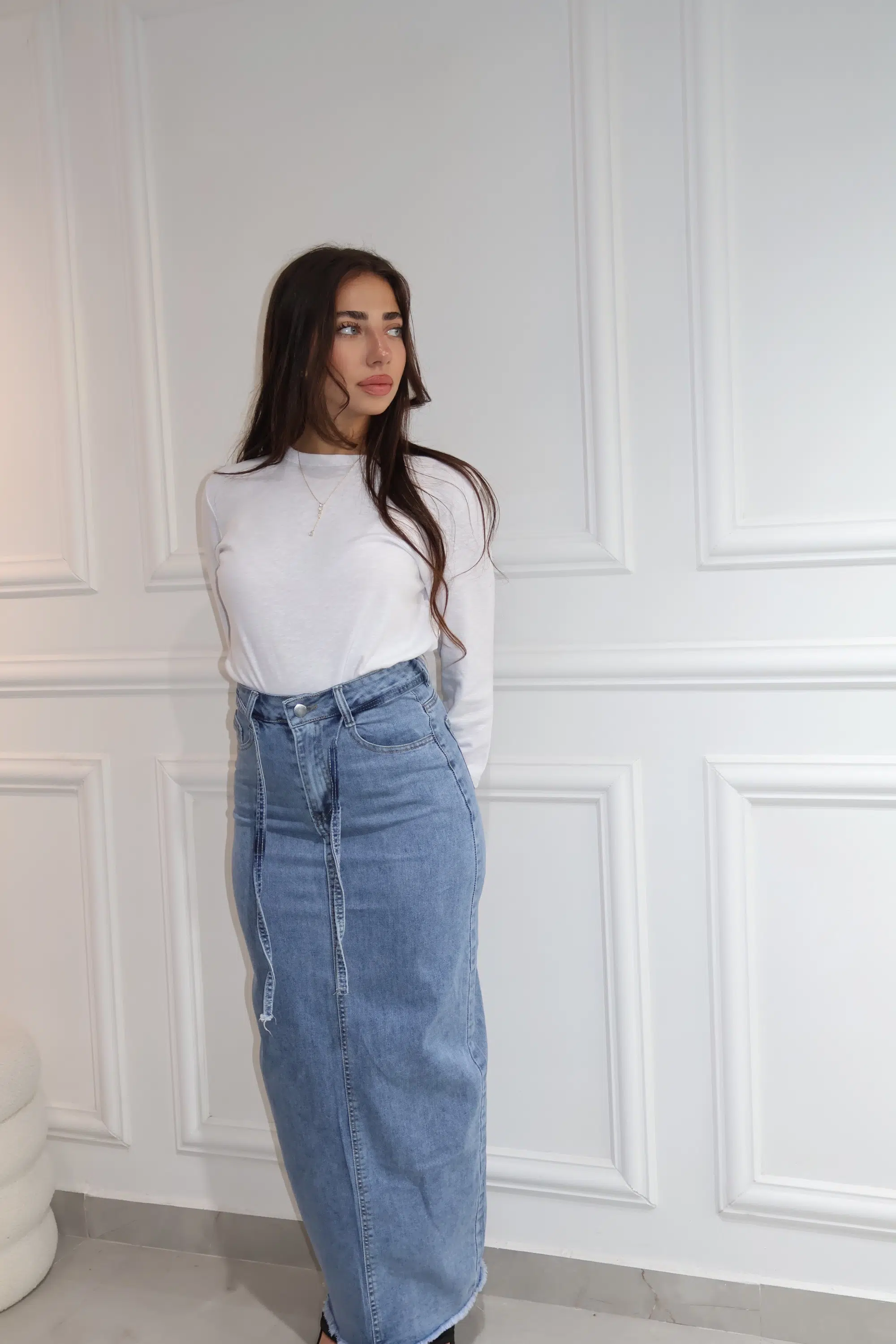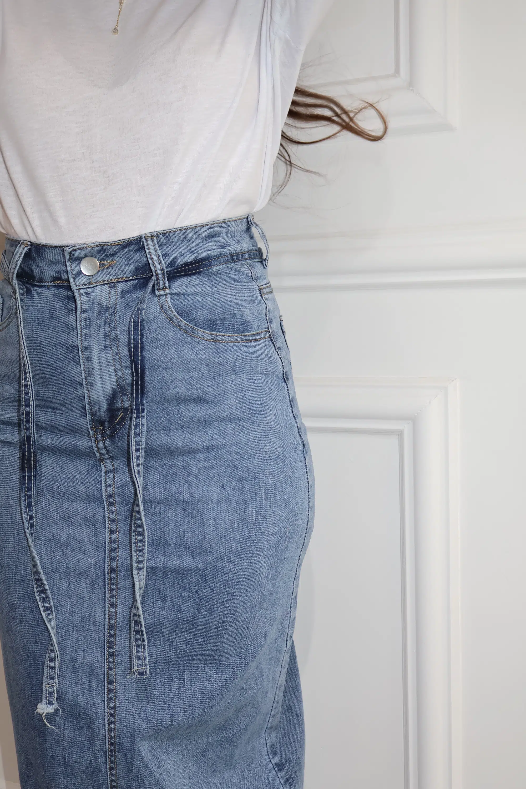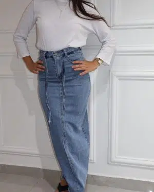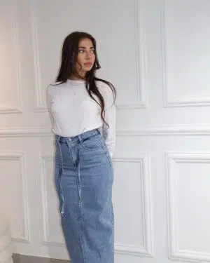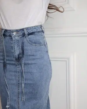 חצאית גינס חגורה כחול בהיר