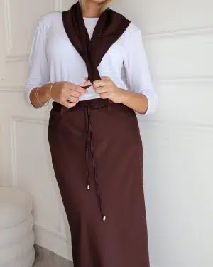 חצאית סאטן+מטפחת סגול חציל