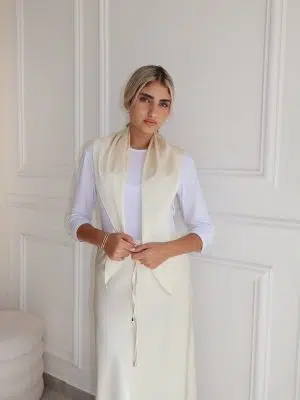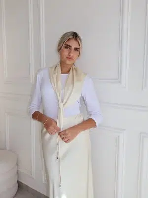חצאית סאטן+מטפחת שמנת