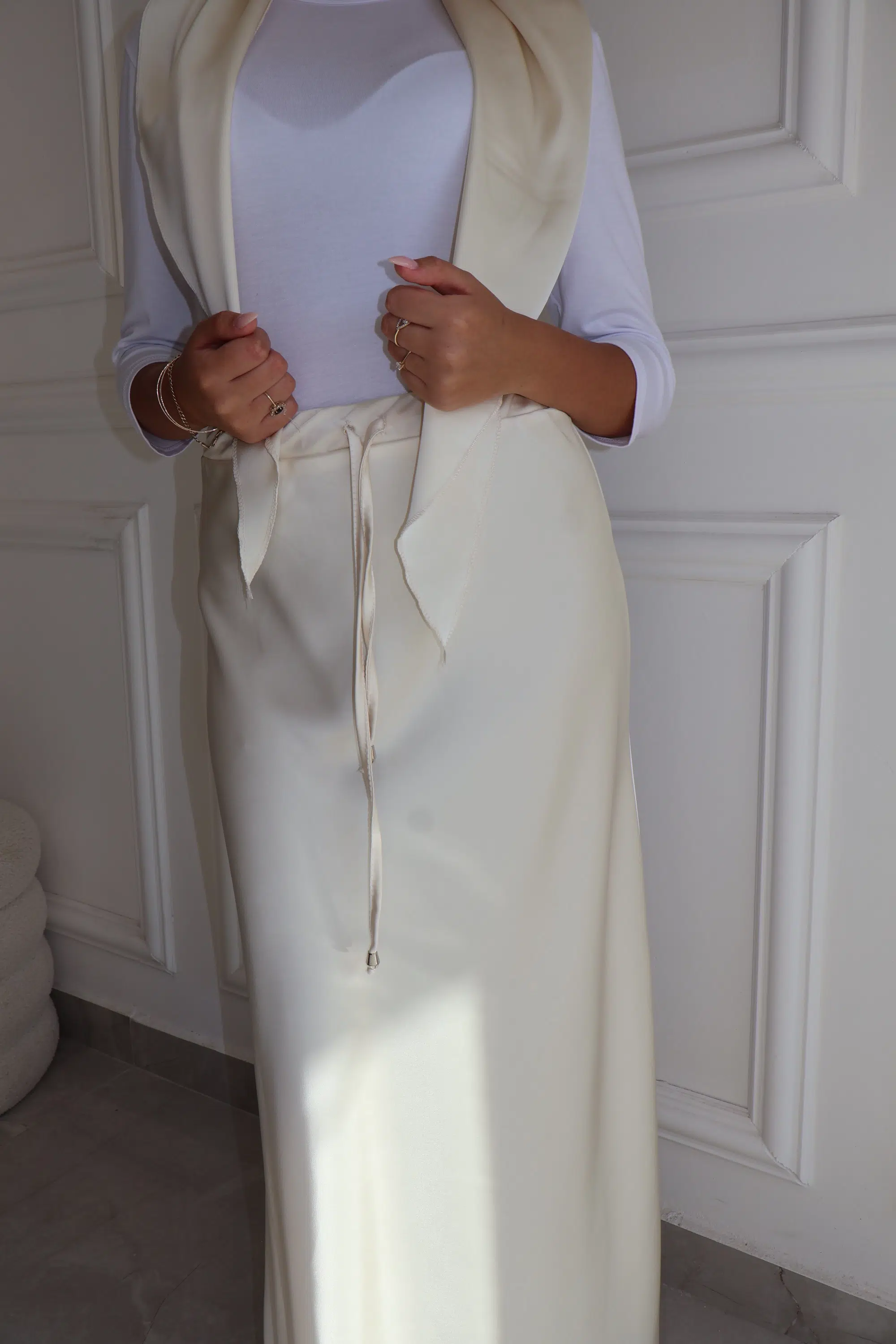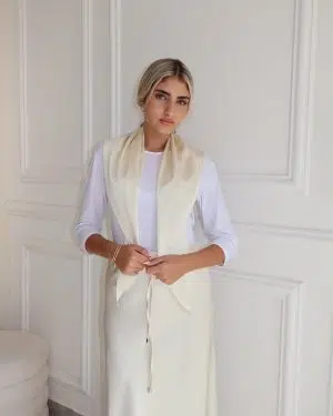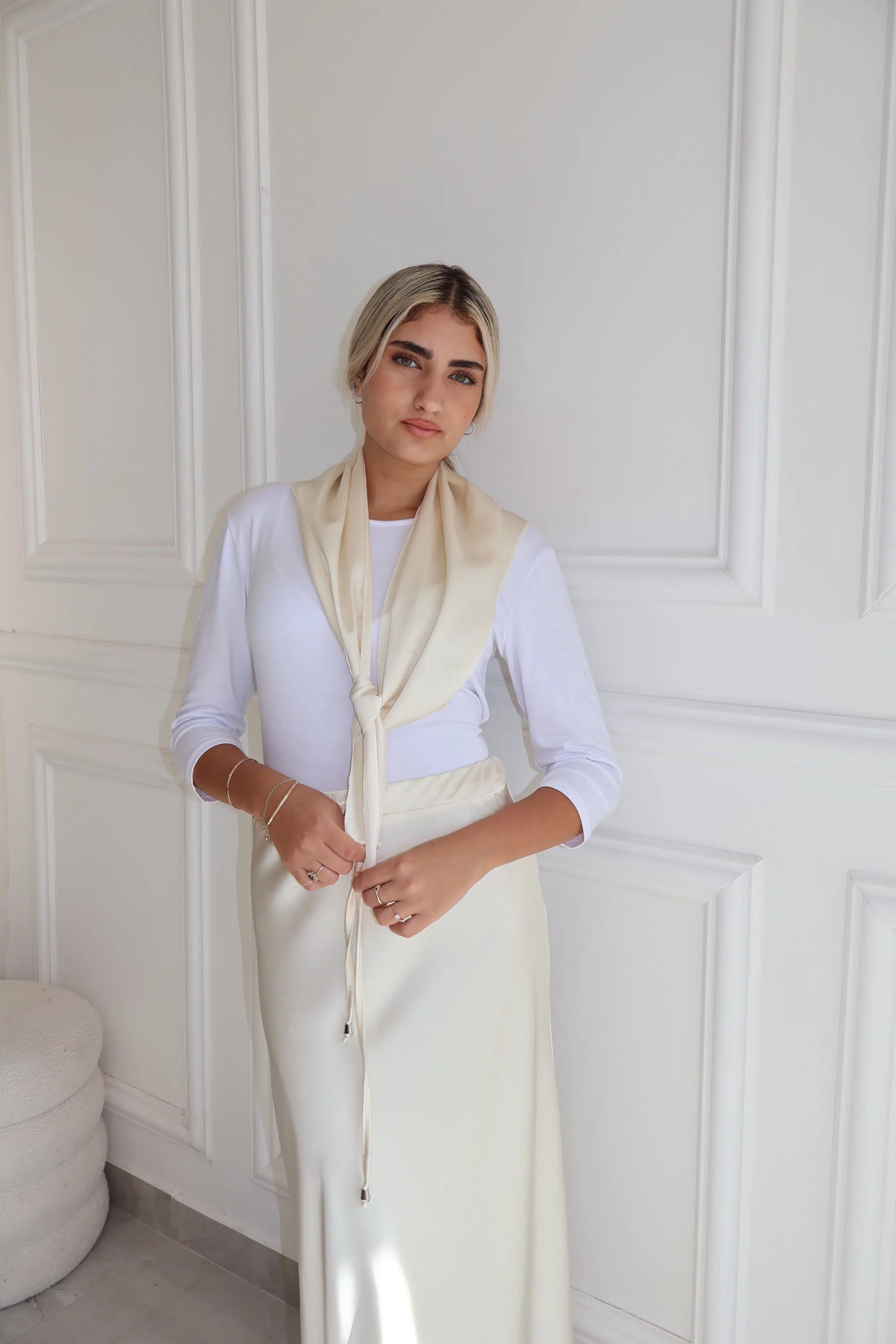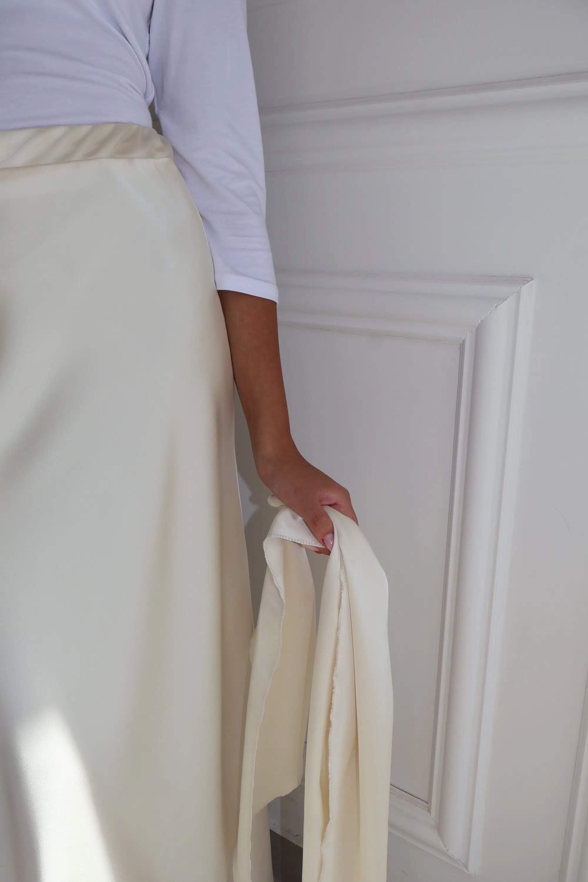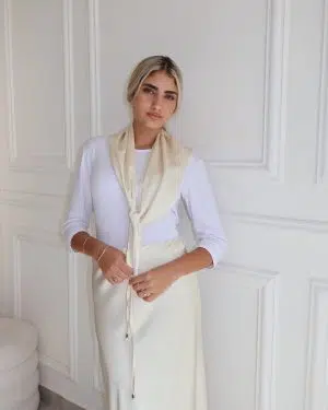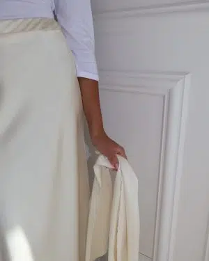 חצאית סאטן+מטפחת שמנת