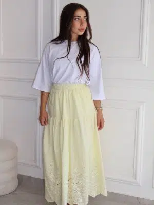 חצאית תחרה צהוב בננה בהיר