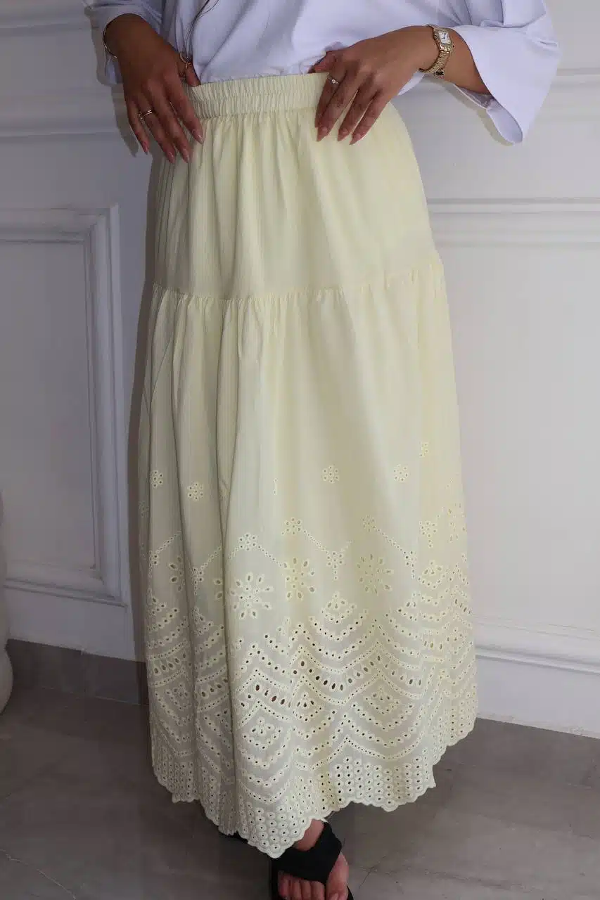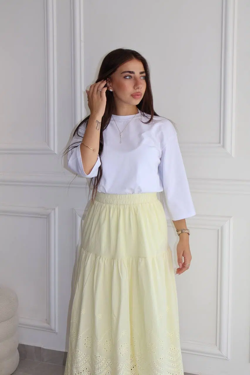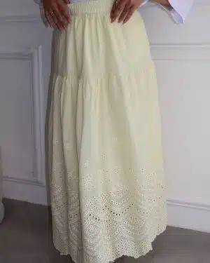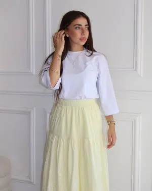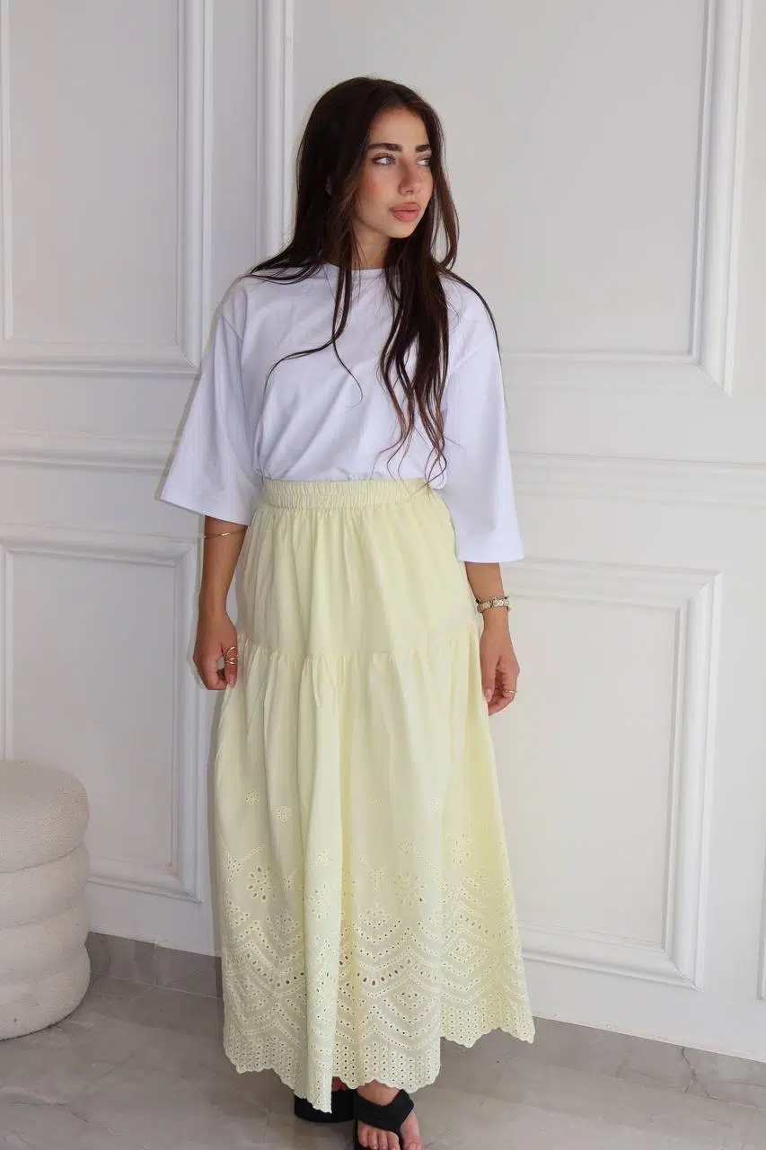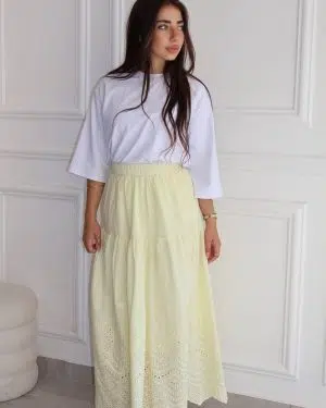 חצאית תחרה צהוב בננה בהיר