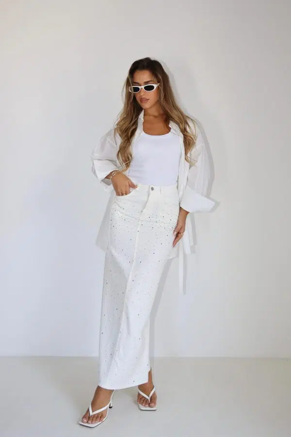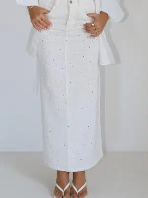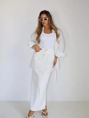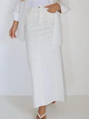 חצאית גינס ניטיים לבנה