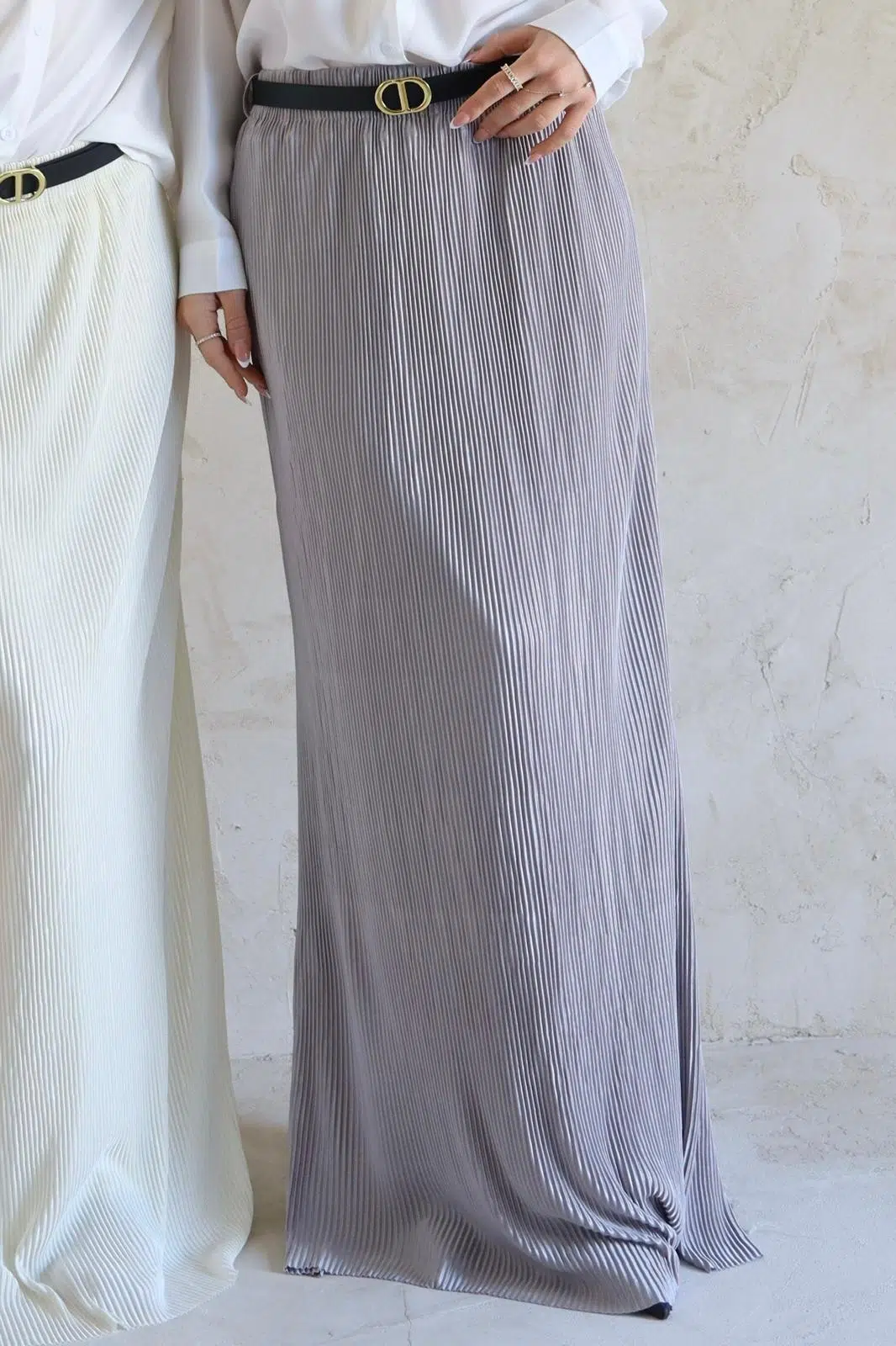 חצאית פליסה אפורה+ חגורה