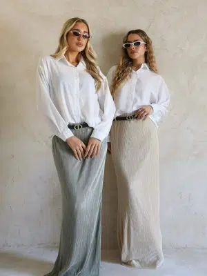 חצאית פליסה ירוק זית+ חגורה