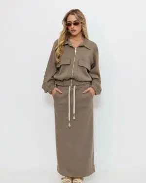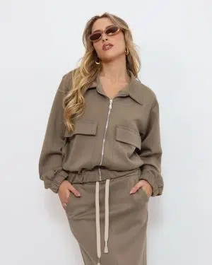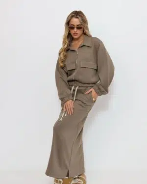חליפת רוכסן כיסים חומה