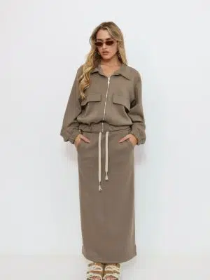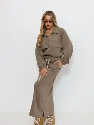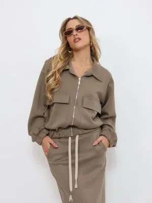 חליפת רוכסן כיסים חומה