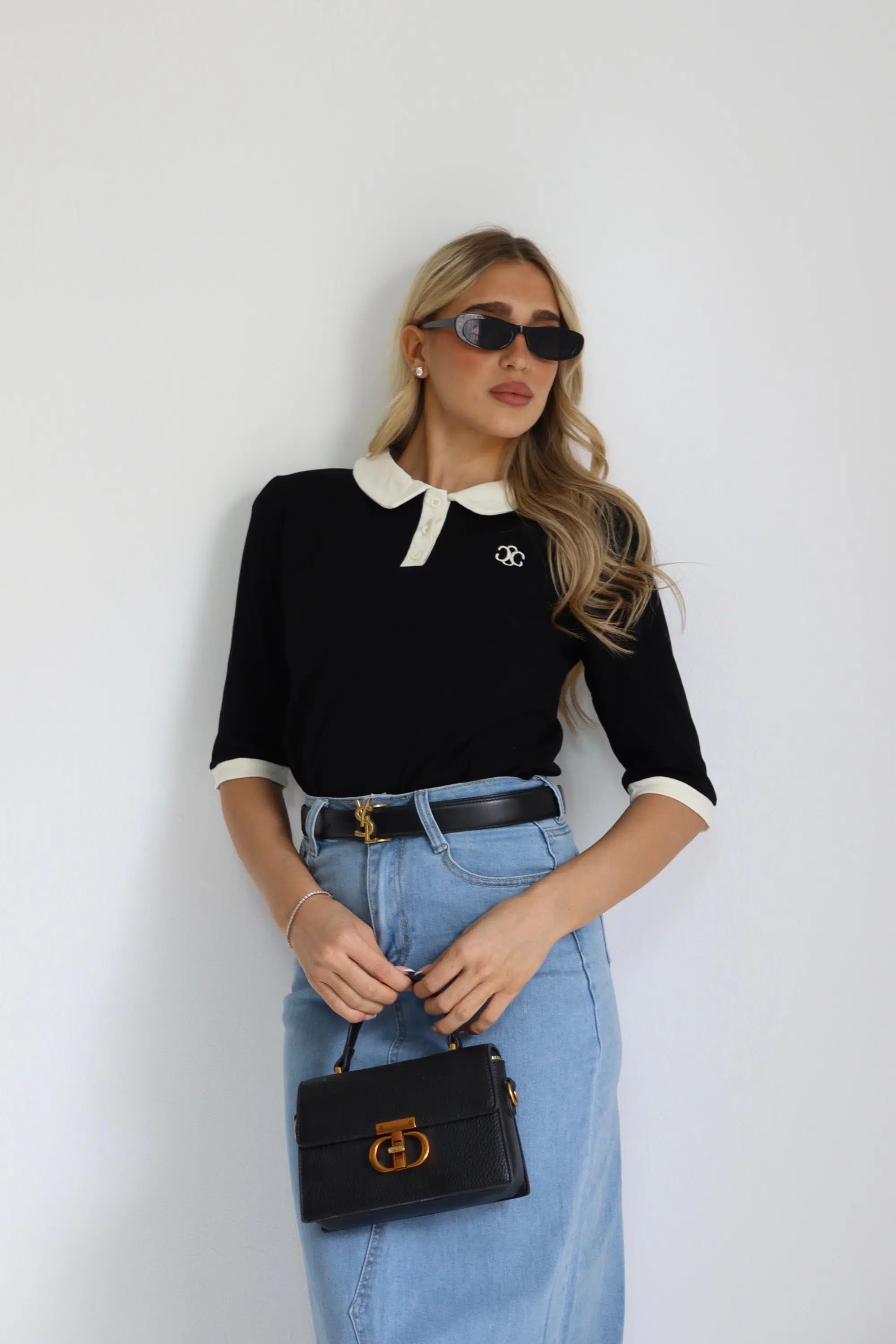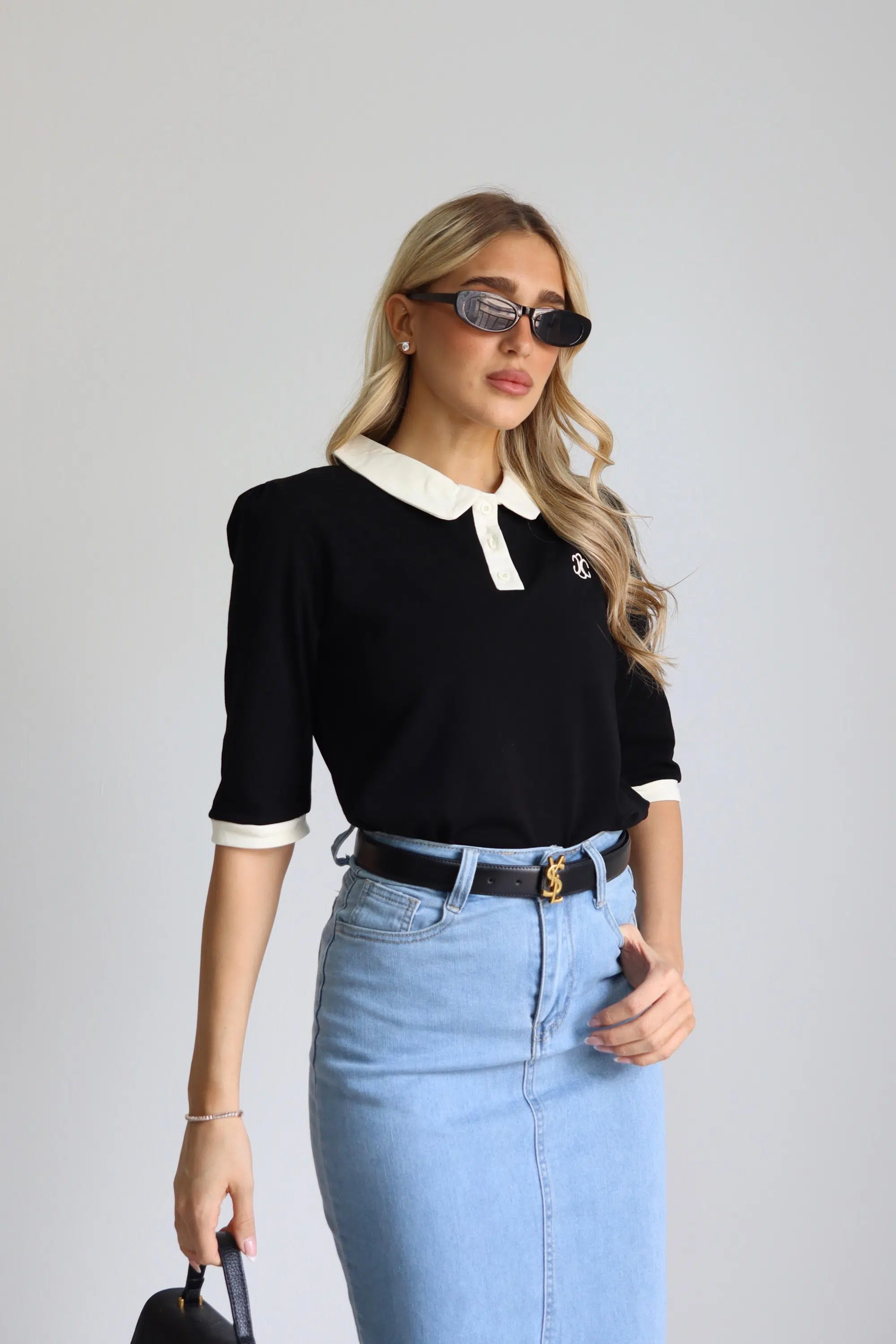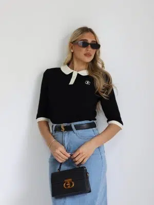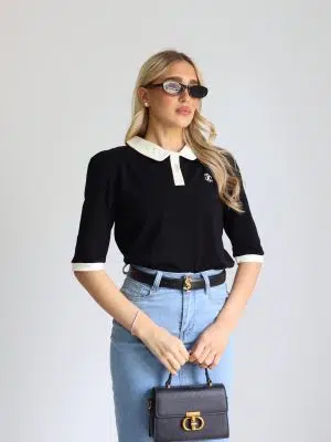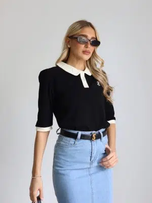 חולצת צווארון מעוגל שחורה