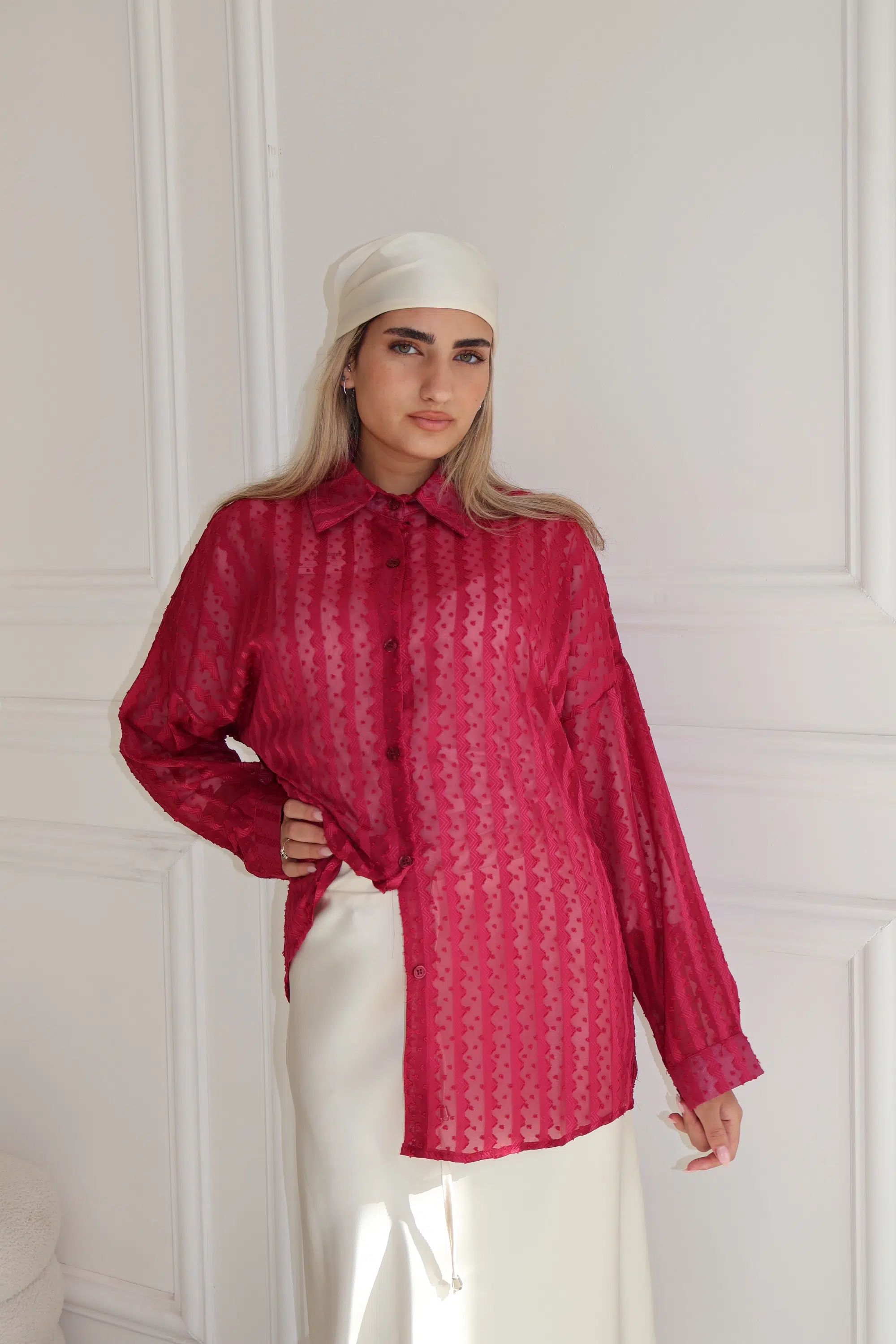 חולצת תחרה נטע בורדו