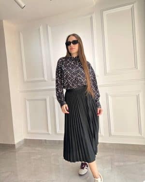 - לאירוע רשמי: חצאית מקסי שחורה, עקבים ומטפחת מלכות ברונזה