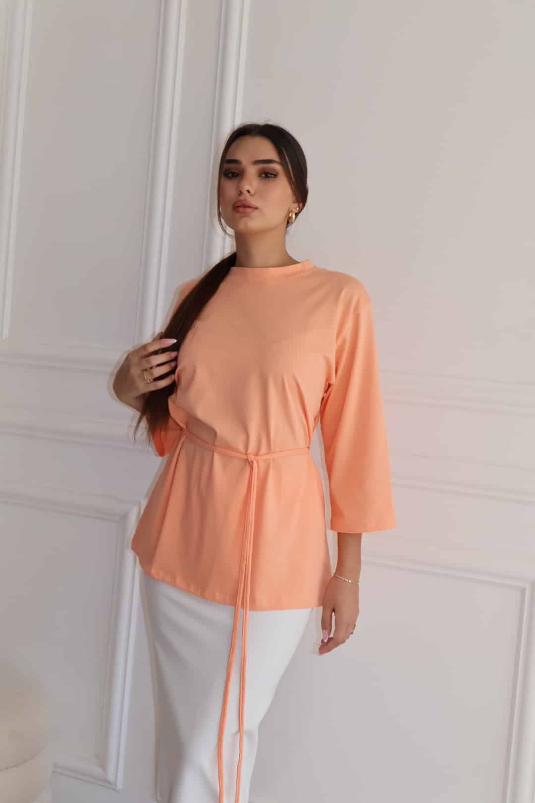 חולצת אוברסייז קשירה אפרסק – סטייל ונוחות לנשים שאוהבות להתבלט