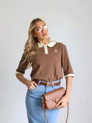 חולצת צווארון מעוגל חומה