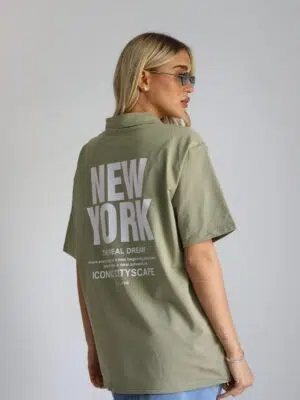 טישרט צווארון ניורק ירקרק