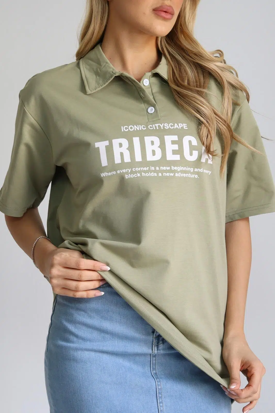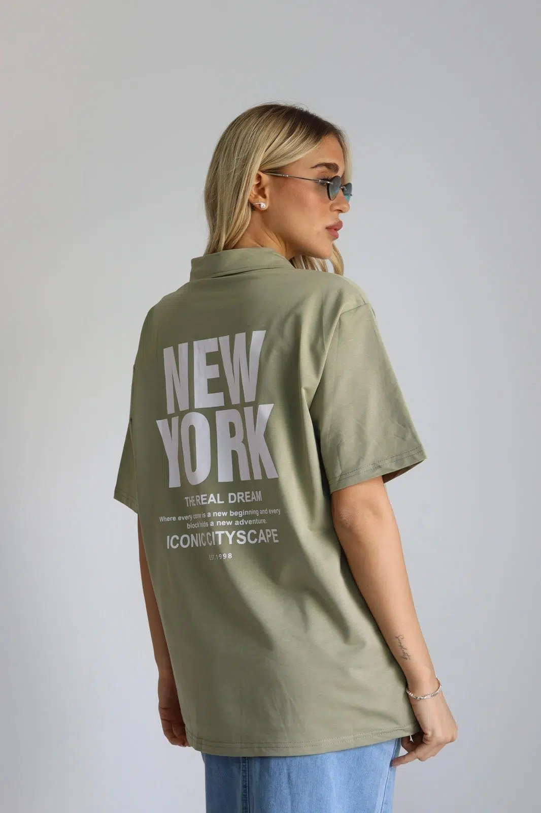 טישרט צווארון ניורק ירקרק