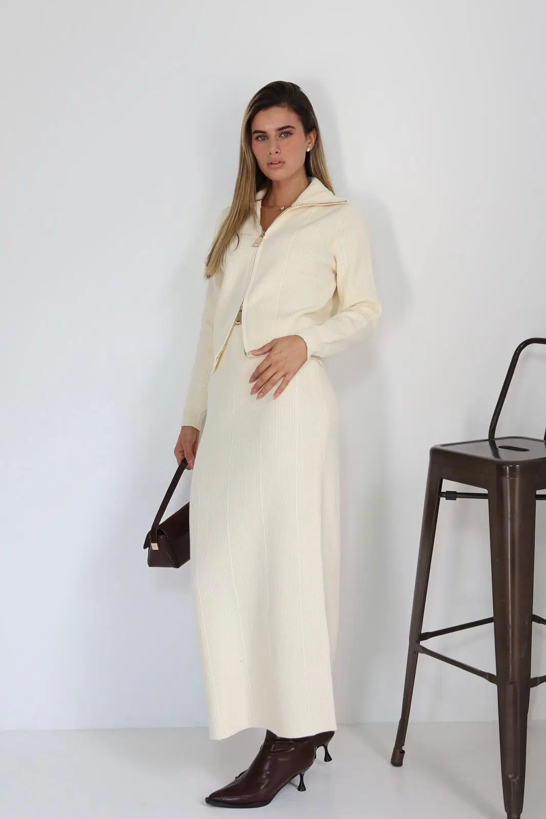 חליפת רוכסן זהב שמנת