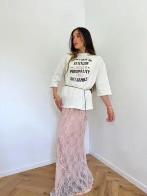 חליפה חצאית תחרה ורודה