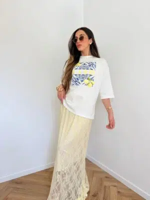 חליפה חצאית תחרה צהובה
