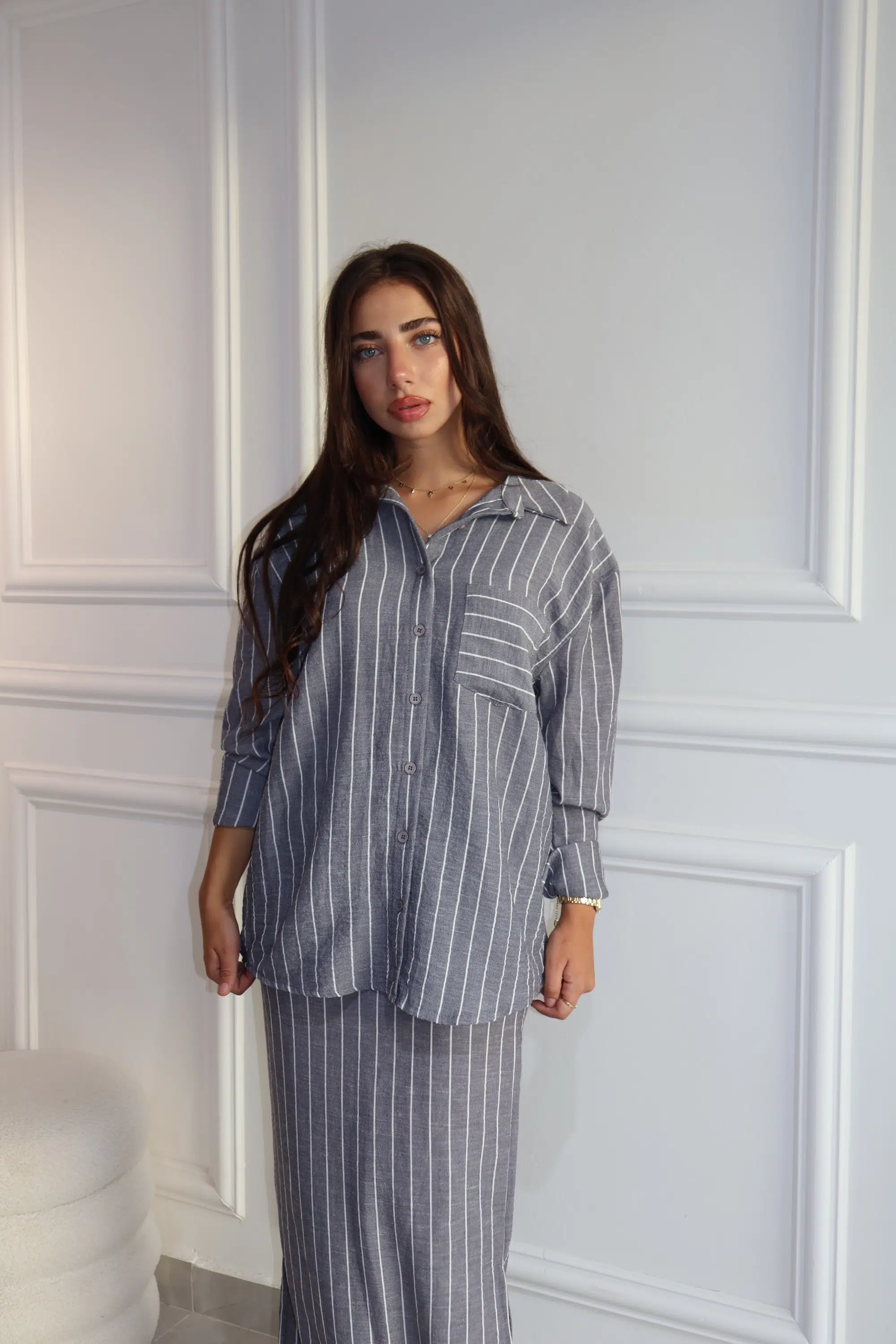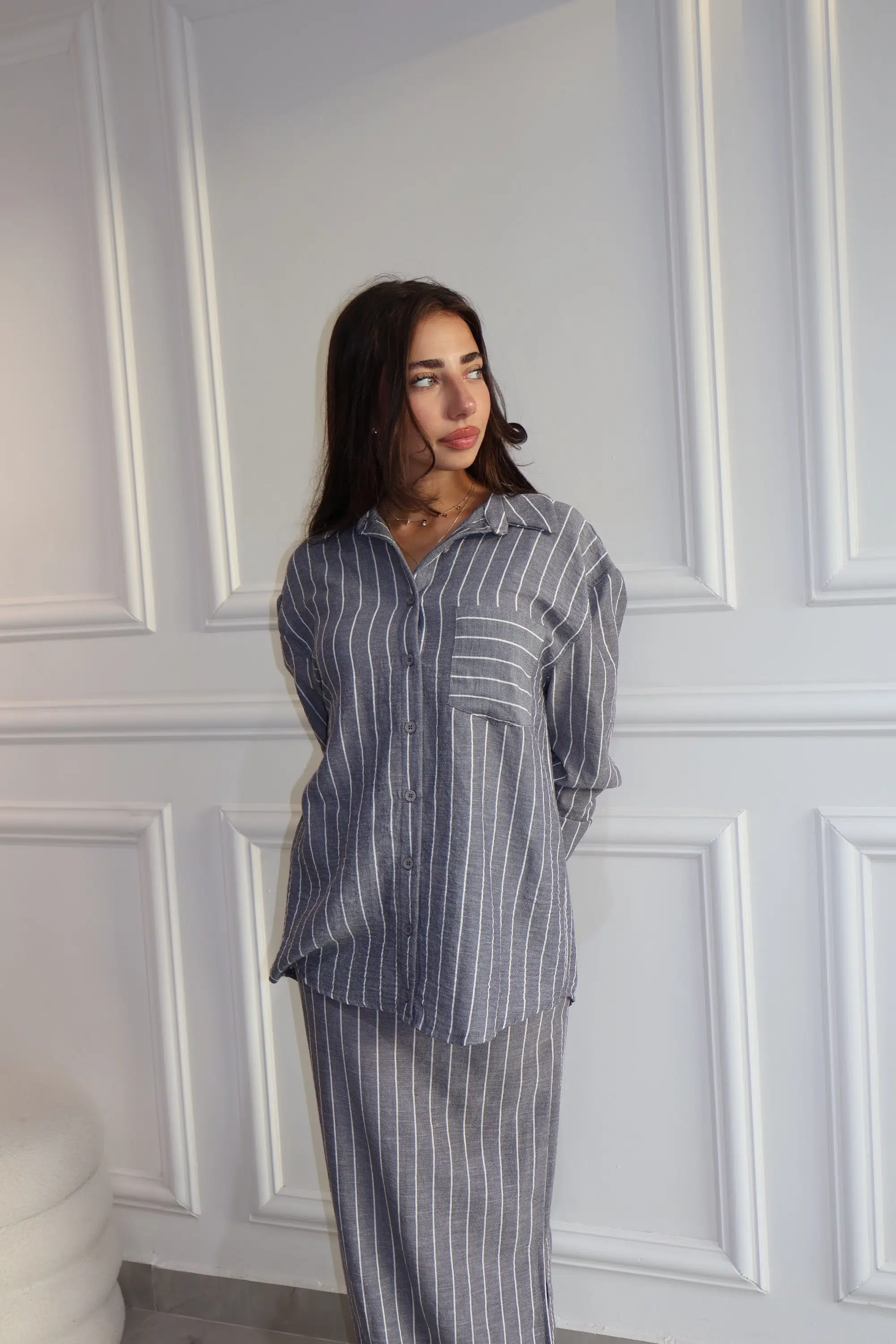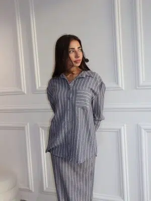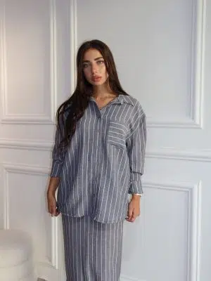 חליפת פישתן פסים אפורה