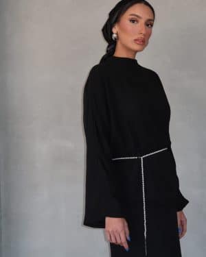 חליפת שיפון שחורה – מראה יוקרתי וצנוע לכל אירוע