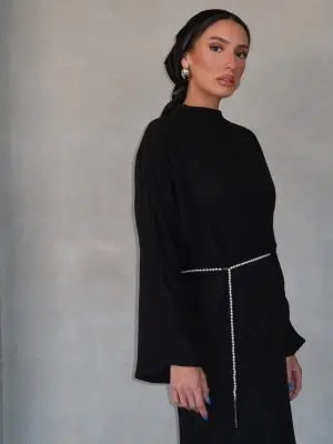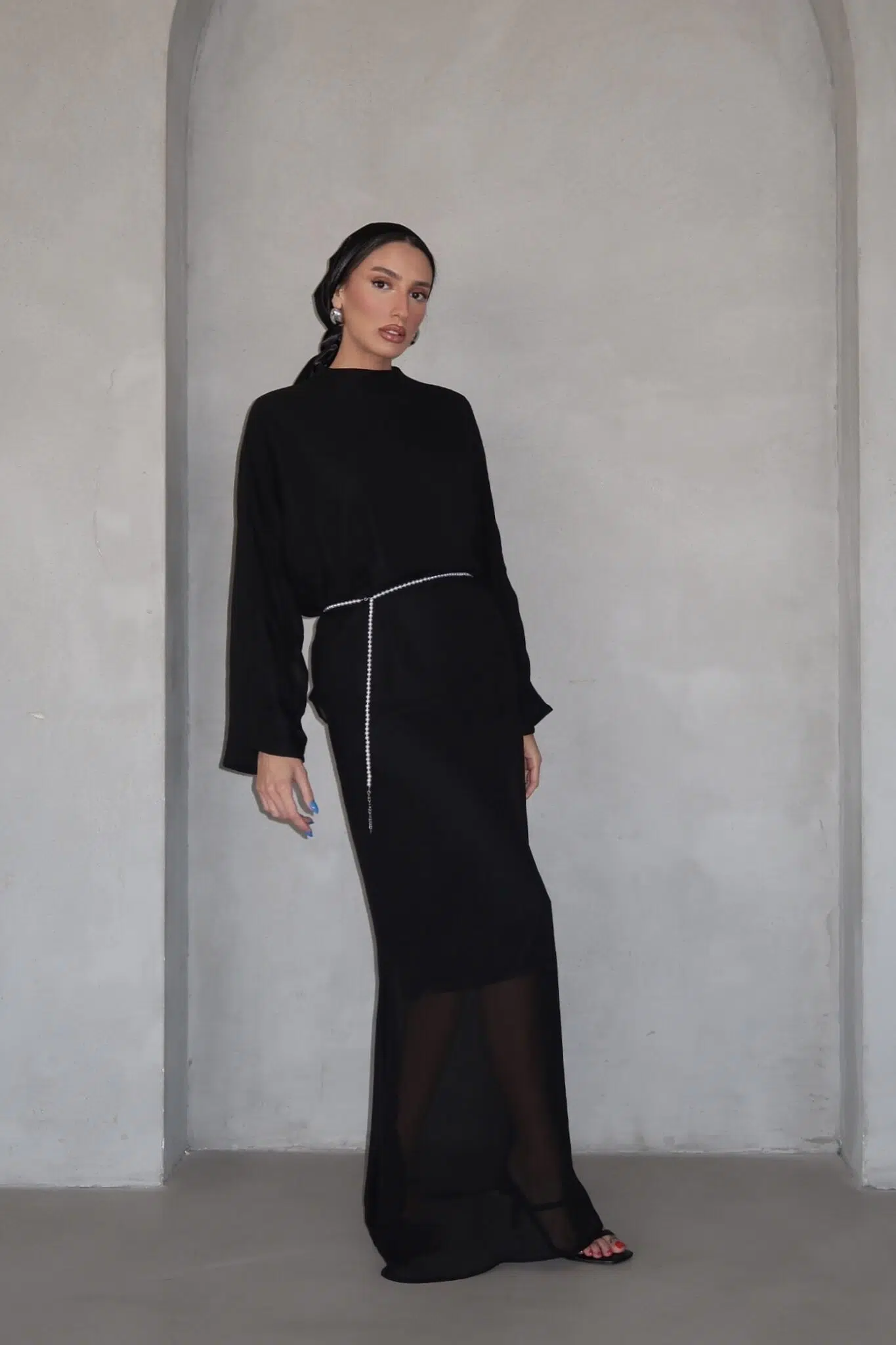 תגיות: חליפה יוקרתית שחורה, חליפה לאירועים, חליפת אופנה שחורה, חליפת ערב שחורה, חליפת שיפון לנשים, חליפת שיפון שחורה